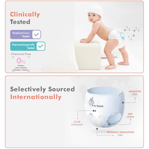 • Breathable Diaper: R for Rabbit XL Diapers for XL size having 10 Million* Breathable pores which allows the air to easily pass through making the diapers highly breathable and acting as a rash guard for your baby by instantly locking moisture in.