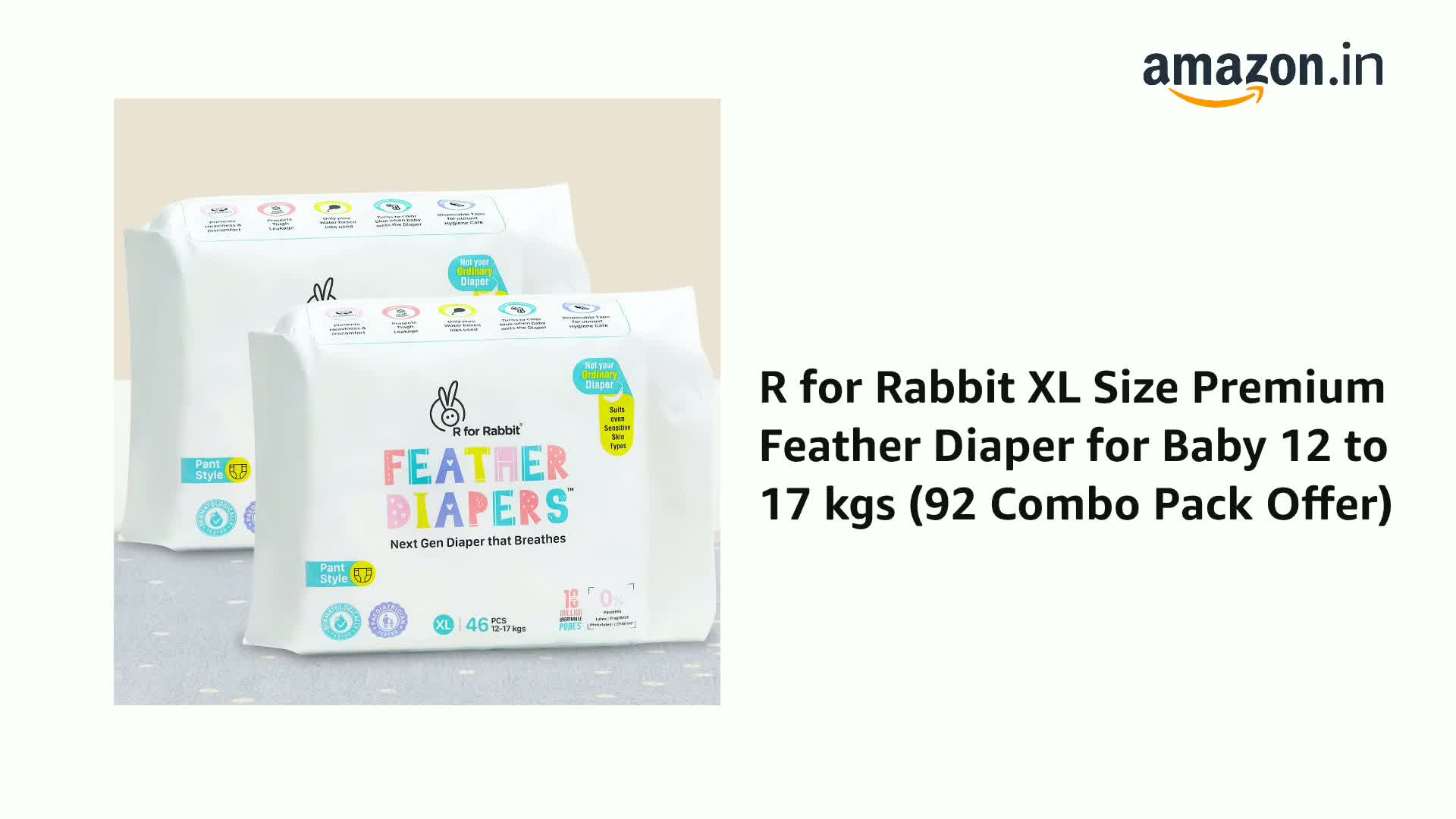 R for Rabbit XL Size Premium Feather Diaper for Baby 12 to 17 kgs (92 Combo Pack Offer)