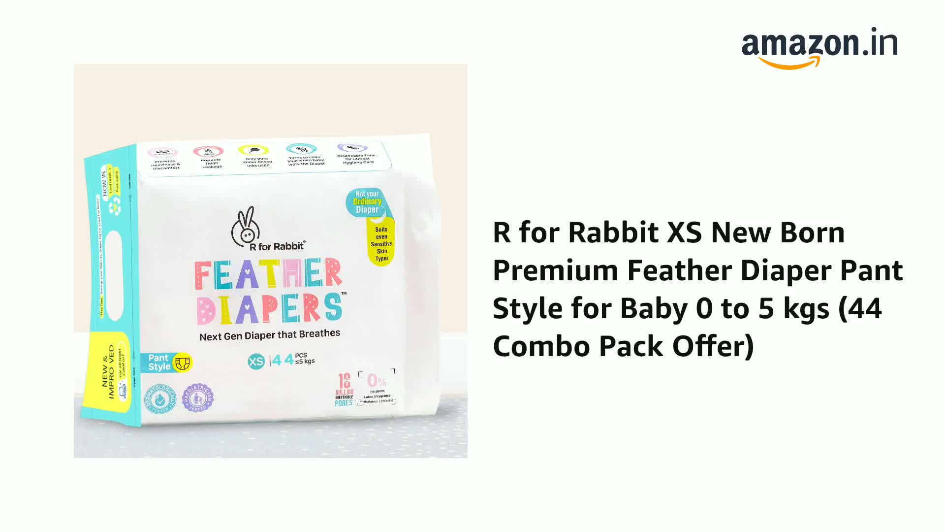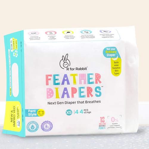Say No to Diaper Rashes R for Rabbit introduces Feather Diapers-Next Gen diapers that breathes these baby diapers are highly breathable and are as thin soft and light weight as feathers. R for Rabbit Feather Diapers for XS are Yoga Pant style diapers with up to 12-hours of super-absorbency and High waist makes it leak proof and super comfortable for active babies. R for Rabbit Pant Style diapers are clinically tested by dermatologist and Pediatrician and are recommended for sensitive skin type babies also. So make your child playtime or sleep time full of comfort with Feather Diapers.