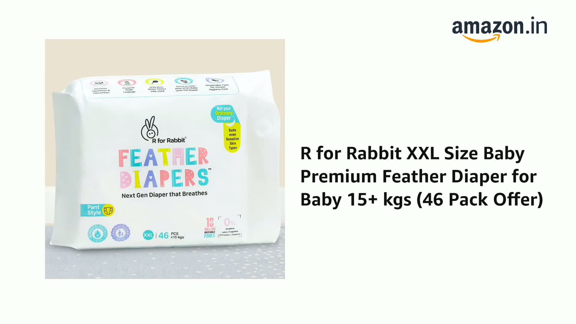 R for Rabbit XXL Size Baby Premium Feather Diaper for Baby 15+ kgs (46 Pack Offer)