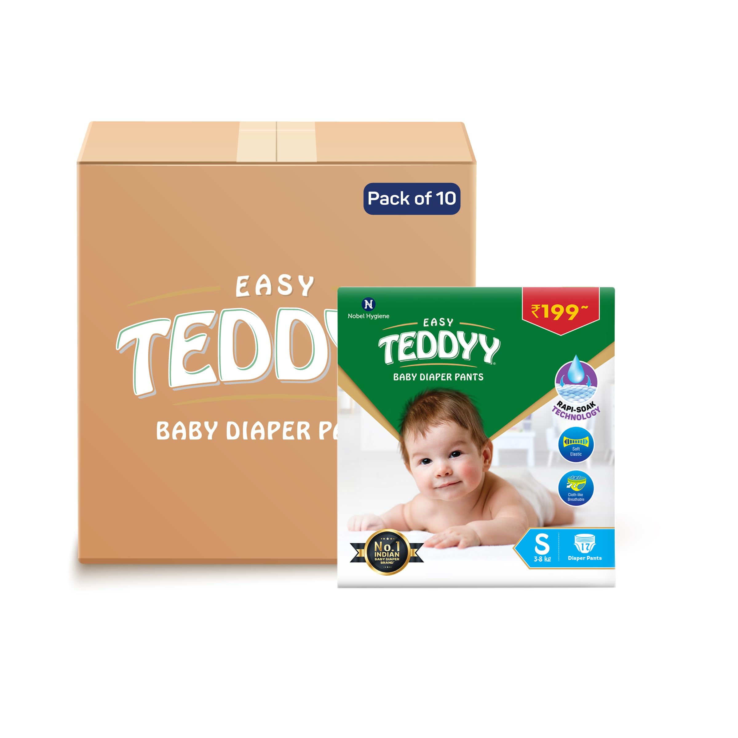 TEDDYY Baby Diapers Pants Easy Small 170 Count (Pack of 10) 4-8 kgs 12 hrs Leak Protection Anti - Bacterial