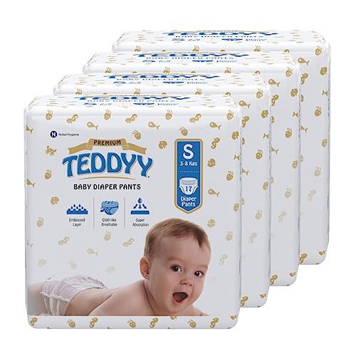TEDDYY Baby Diapers Pants Premium Small 68 Count (Pack of 4), 4-8 kgs, Long Lasting Absorption, Anti - Bacterial