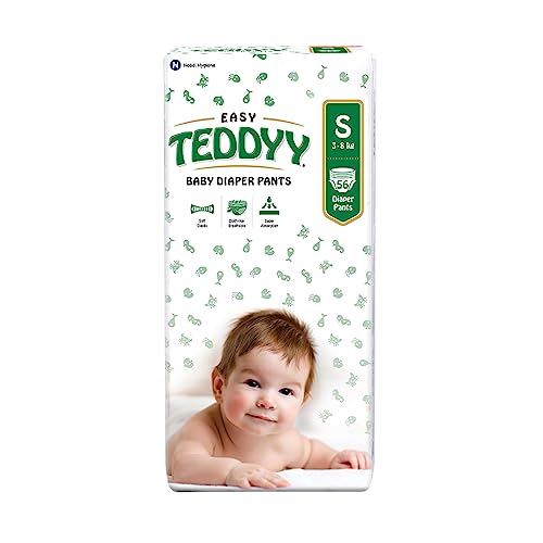TEDDYY Baby Easy Small Diaper Pants 56 Count (Pack of 1) 4-8 kgs 12 hrs Leak Protection Anti - Bacterial