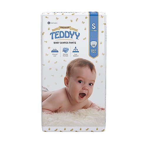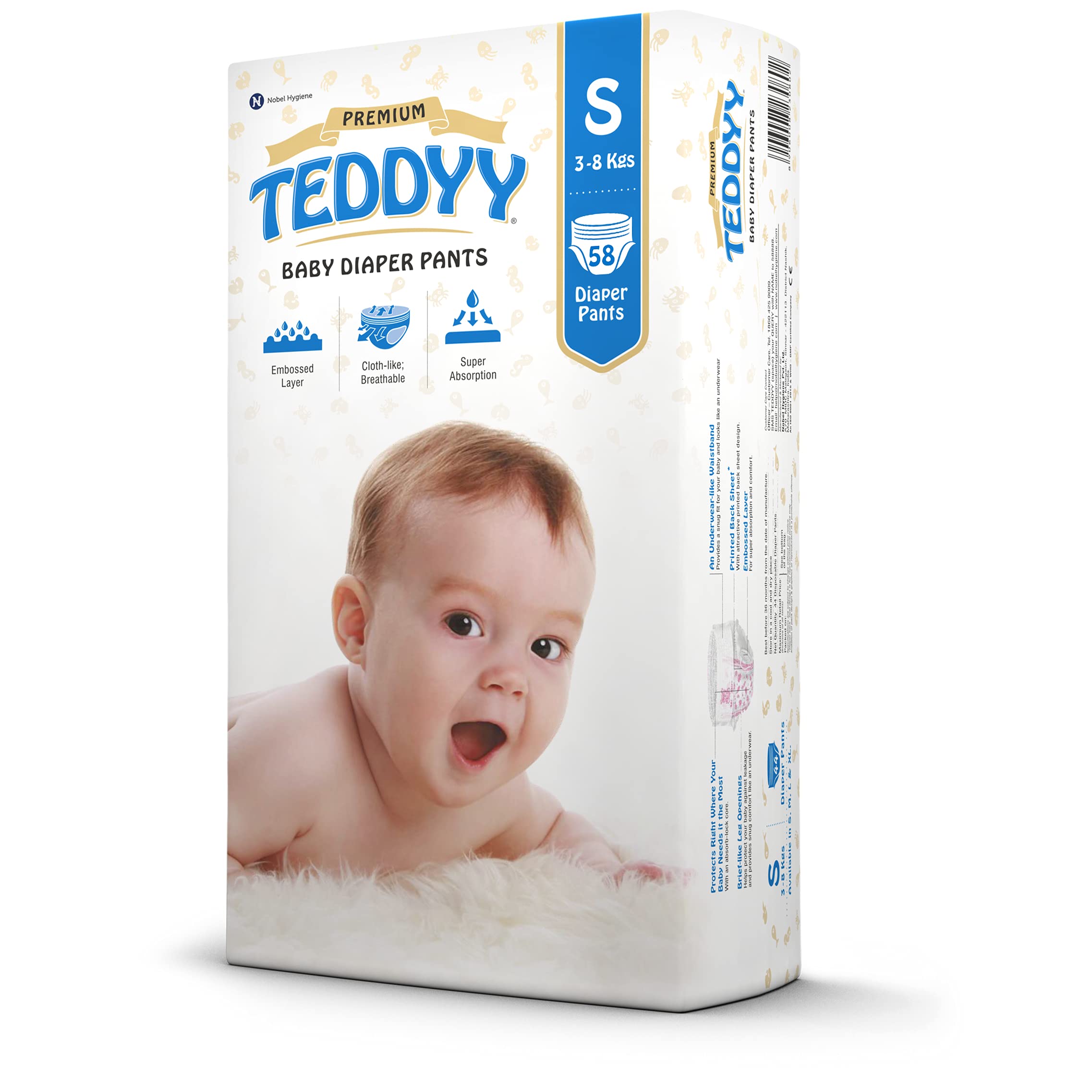 TEDDYY Baby Premium Diapers Pants Small 58 Count, 4-8 kgs, Long Lasting Absorption, Anti - Bacterial
