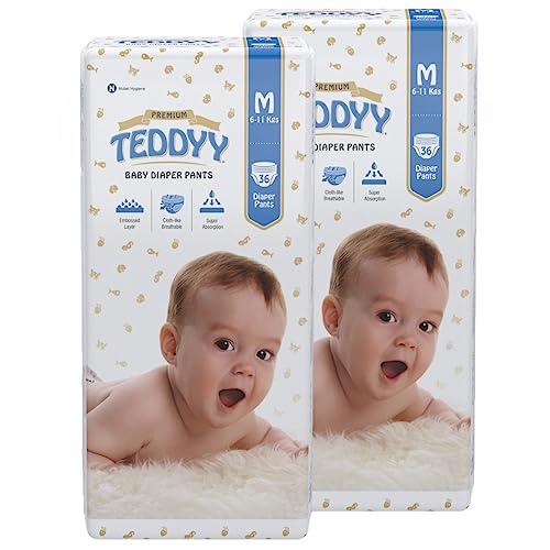 TEDDYY Baby Premium Medium Diaper Pants 72 Count (Pack of 2), 7-12 kgs, Long Lasting Absorption, Anti - Bacterial