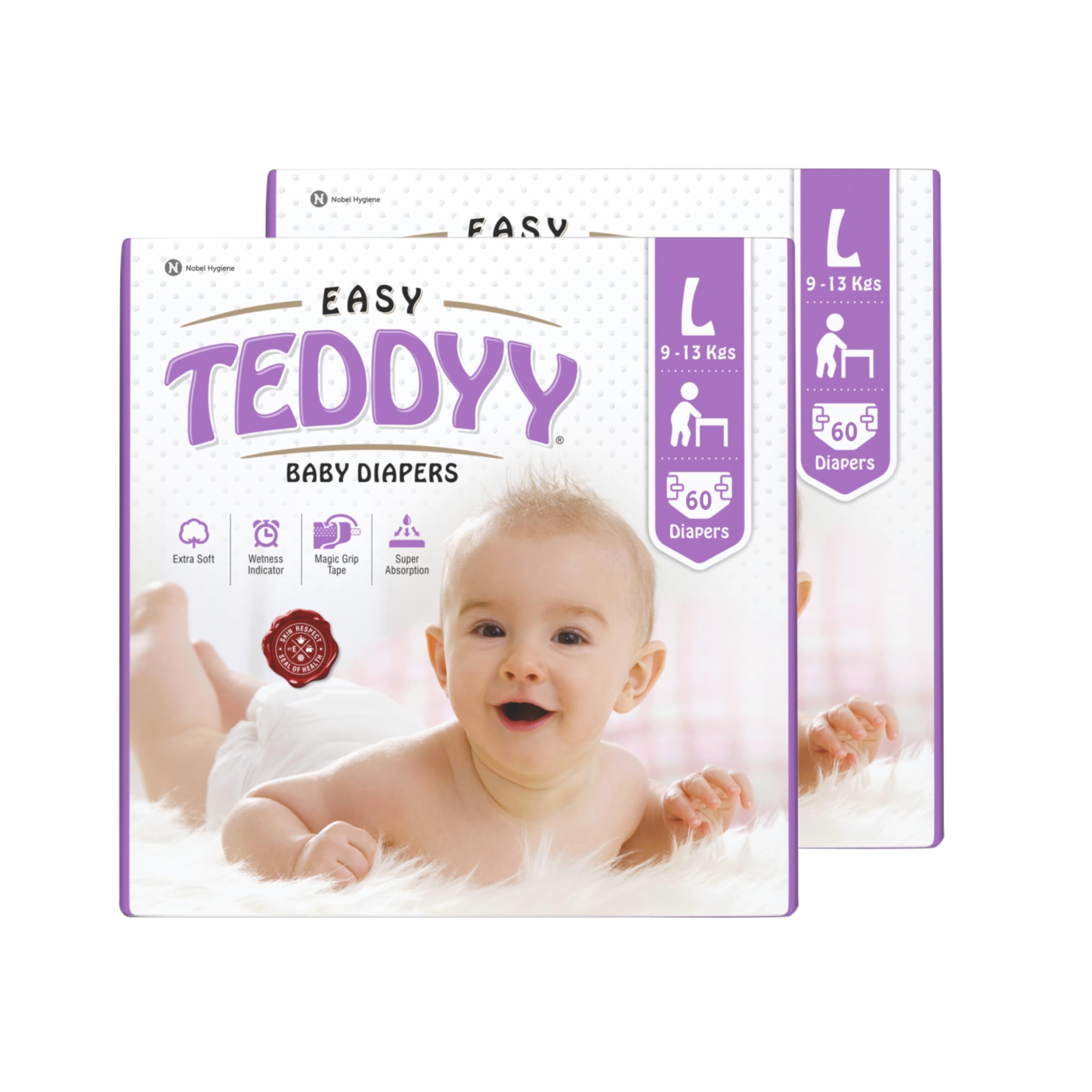 TEDDYY Easy Baby Diapers Large (10-12 Months) - 120 Count, 9-13 kgs, Long Lasting Absorption, Anti - Rash
