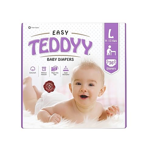 TEDDYY Easy Baby Large Size Diaper (36 Count), 9-13 kgs, Long Lasting Absorption, Anti - Rash