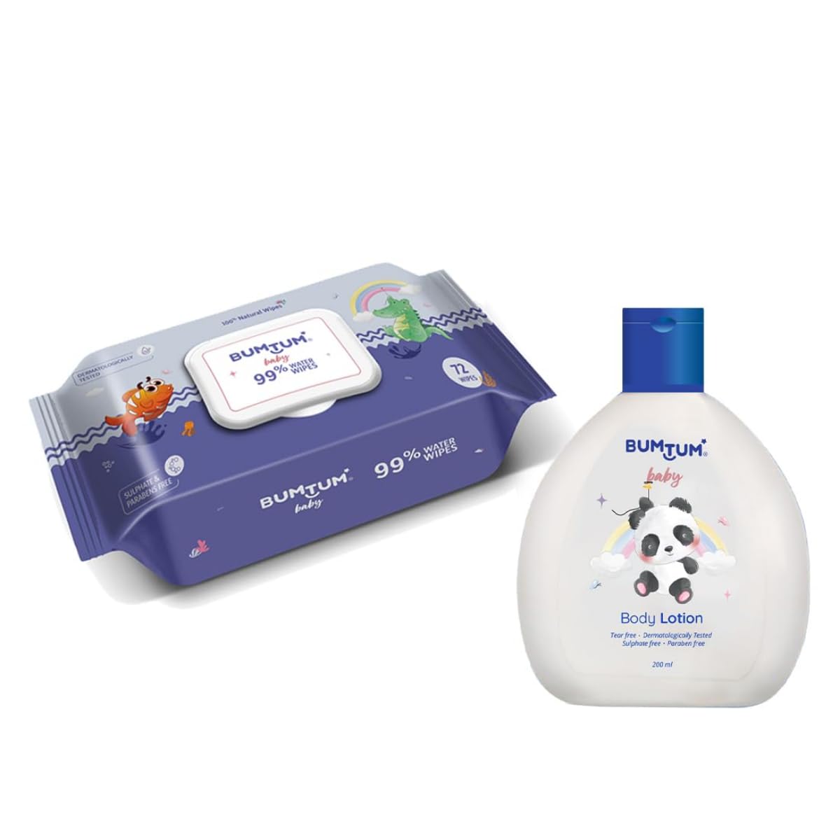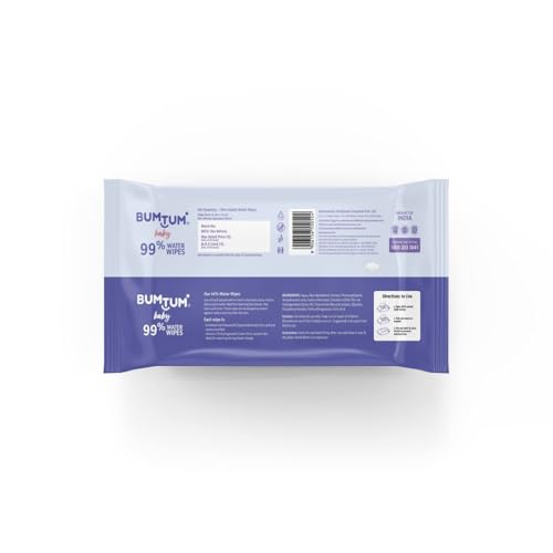 Bumtum Baby Water Wet Wipes are soft and natural with no harsh chemicals and as mild to skin as pure water. Ideal for cleansing face hands feet bums and tums. These wipes are soft and enriched with aloevera chamomile extract Vitamin E & Castor oil which protect against rashes and nourishes the skin.