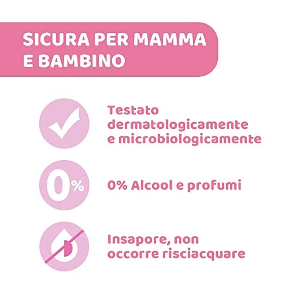Chicco cleansing breast wipes are perfect right before and after feeding; you don't have to rinse the breast. They do not contain tesio-active agents perfumes alcohol or colourings.