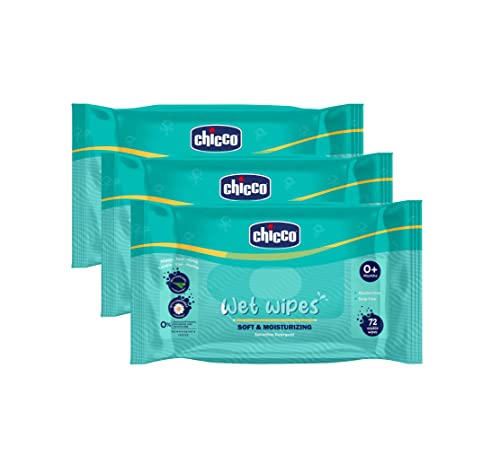 Chicco Soft Cleansing wet Baby Wipes Ideal for Nappy Face and Hand Dermatologically Tested Paraben Free sticker Pack of 3 (72 Sheets per Pack) 216 pcs