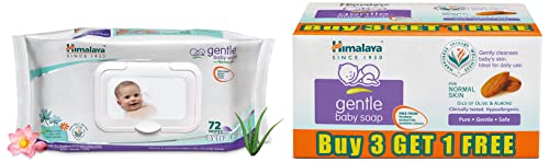 Himalaya Gentle Baby Wipes, 72 Wipes,White & Gentle Baby Soap (4N*75g)