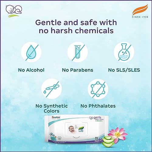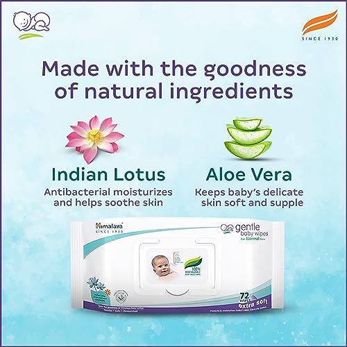 Himalaya Gentle Baby Wipes 72 WipesWhiteAbout Himalaya Gentle Baby Wipes: Infused with the goodness of Aloe Vera and Indian Lotus extracts Himalaya Gentle Baby Wipes are mild enough to soothe baby's bottom during a diaper change. Our wipes can also be used to gently cleanse baby's skin. Ideal for use when traveling. Gentle Care for Your Baby's Tender Skin Soothe your baby's skin while changing diapers with the Himalaya herbals baby wipes. Featuring the herbal ingredients Aloe Vera and Indian Lotus these handy baby wipes are sure to gently cleanse your little one's skin. Aloe Vera which is used in several skin remedies keeps your child's skin moisturised and fresh while Indian Lotus ensures that the skin remains soft supple and smooth. The natural ingredients of the herbal baby wipes keep your little one free from harmful bacteria all day. Use these gentle baby wipes to clean those muddy little hands and fingers so that your little one remains fresh and clean all the time. Perfect Addition to Any Baby Bag When it comes to travelling along with your little toddler the Himalaya herbal wipes make the perfect addition to your bag.