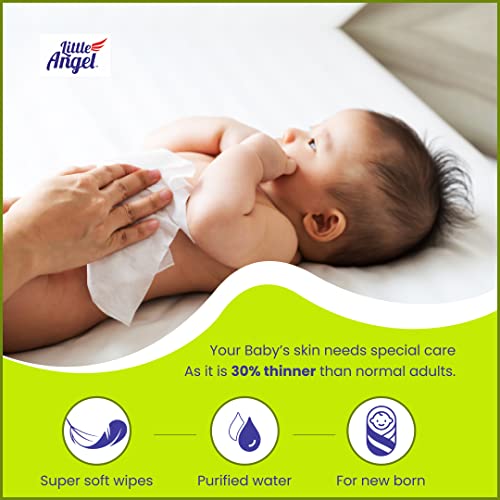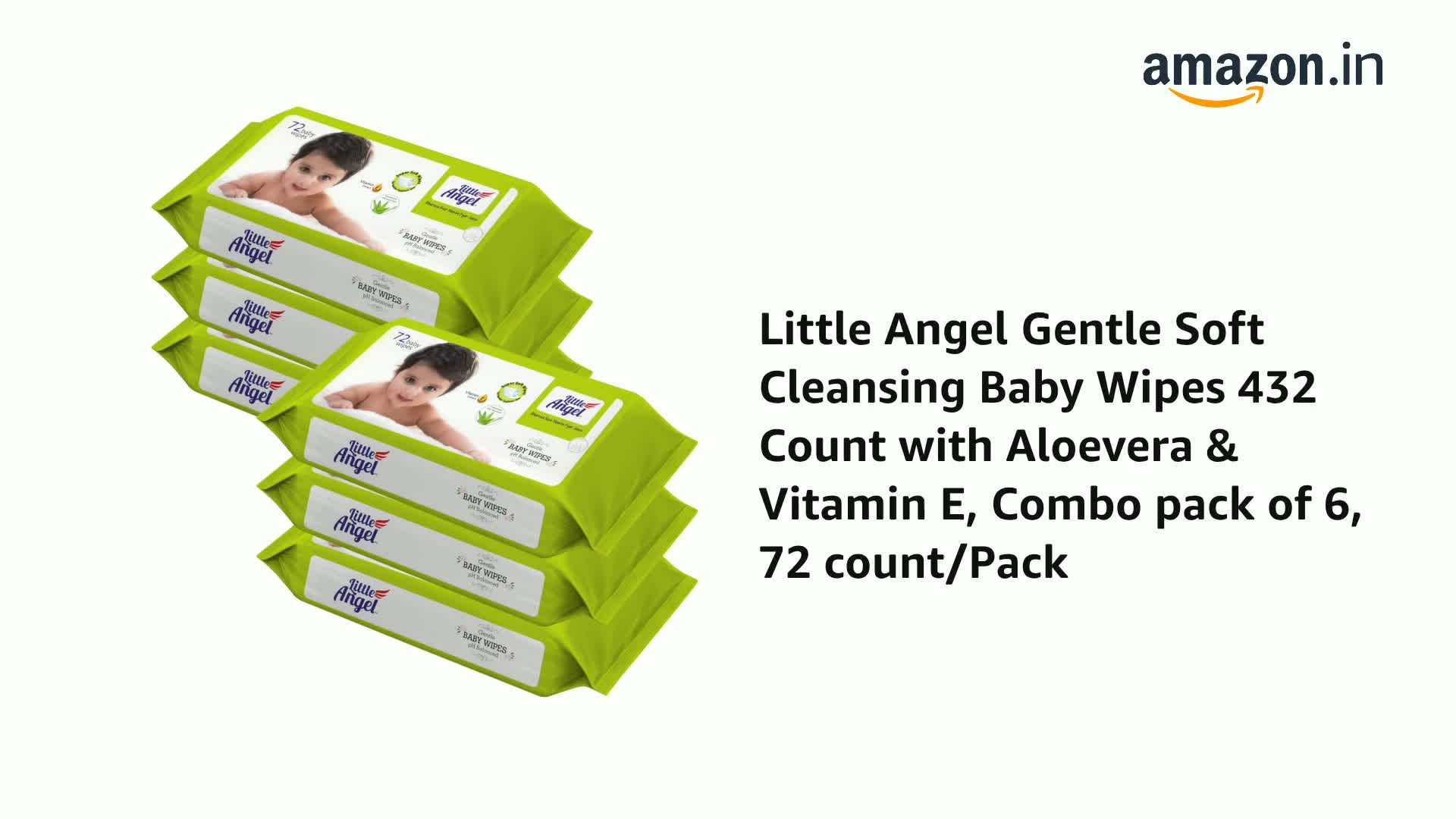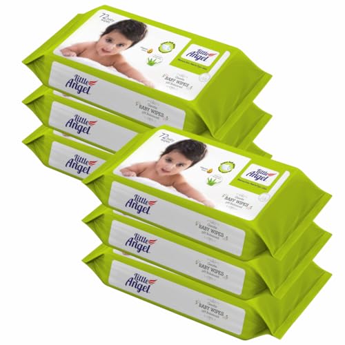 Little Angel Super Soft Cleansing Baby Wipes 432 Count Enriched with Aloe vera & Vitamin E pH Balanced Dermatologically Tested & Alcohol-free Pack of 6 72 count/pack