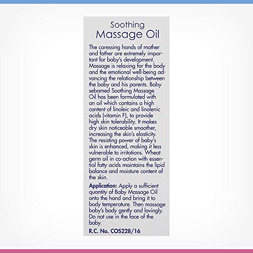 • Take 2 to 3 ml of Sebamed soothing massage oil on your palm with the help of unique pump applicator and gently massage baby's body with it