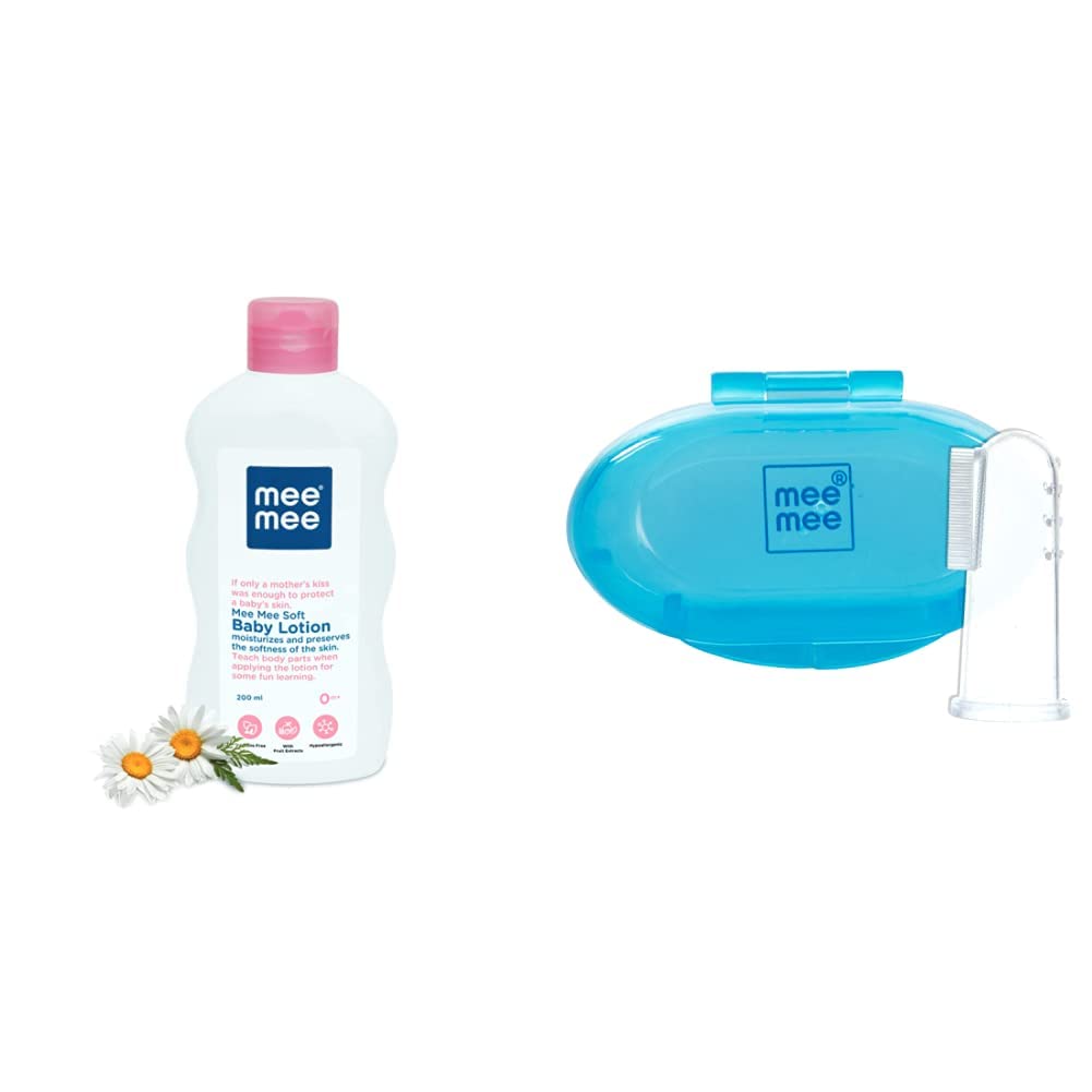 Mee Mee Baby Lotion With Fruit Extracts- 200 ml (Single Pack) & Mee Mee Unique Finger Brush, Blue