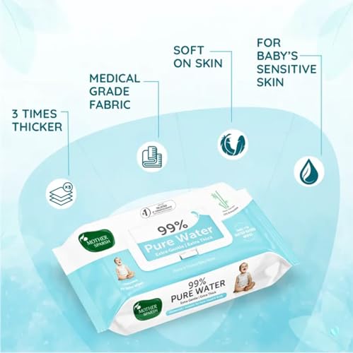 • 3 X THICKER PURE WATER BABY WIPES: As a parent you don't want coarse thin baby wipes to touch your little one's skin. Thin wipes have a rough texture which harms the baby's delicate skin. Mother Sparsh 99% Pure Water Baby Wipes are thicker as good as cott