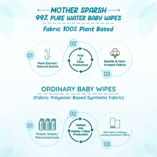 Mother Sparsh 99% Pure Water Baby Wipes are as Good as Cotton and Water. These wet wipes for babies are made up of medical-grade fabric that suits best to delicate Skin of Babies. This super Pack of 2 thick Baby wet wipes are 3X Times Thicker wet wipes. This combo of wet tissues/ wet wipes is a super saver pack. Wipes for Babies combo has 72 pcs/pack. These baby wipes with lid make sure wipes do not get dry. Trusted by 1 million moms these wipes are ideal for newborns.
