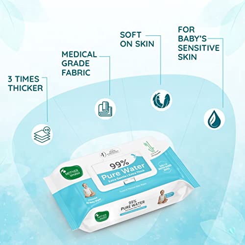 HomeBabyDiaperingBaby WipesMother Sparsh 99% Pure Water (Unscented) baby wipes- Super thick I (72 pcs/pack - Pack of 4)+ MS Natural Insect Repellent for Babies, Herbal Armor