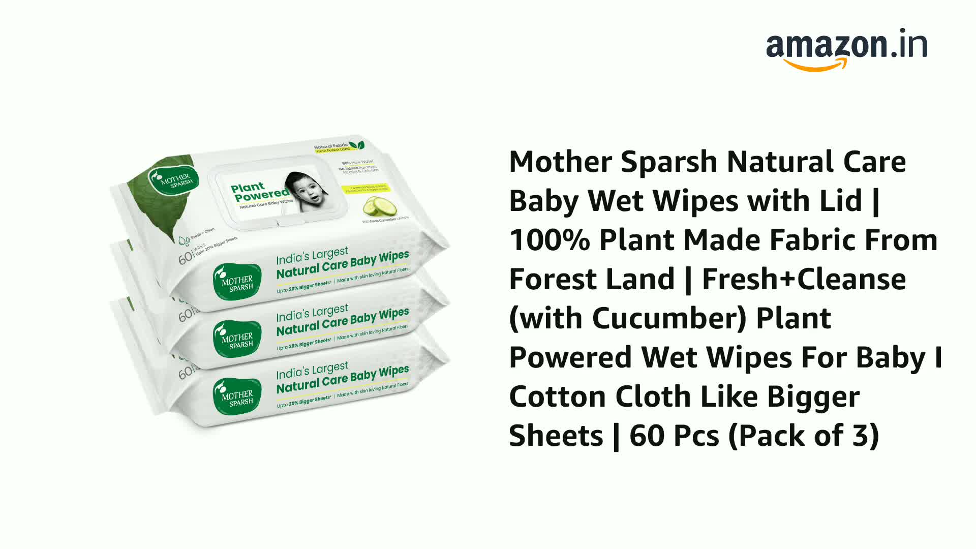 Mother Sparsh Plant Powered Cloth like Natural Baby Wipes with 98% Water & Cucumber Extract | Mildly Scented | 60pc each (Pack of 3)