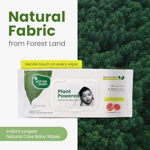 Mother Sparsh Plant Powered Cloth like Natural Baby Wipes with 98% Water & Grapefruit Extract | Mildly Scented | 60pc each (Pack of 2)