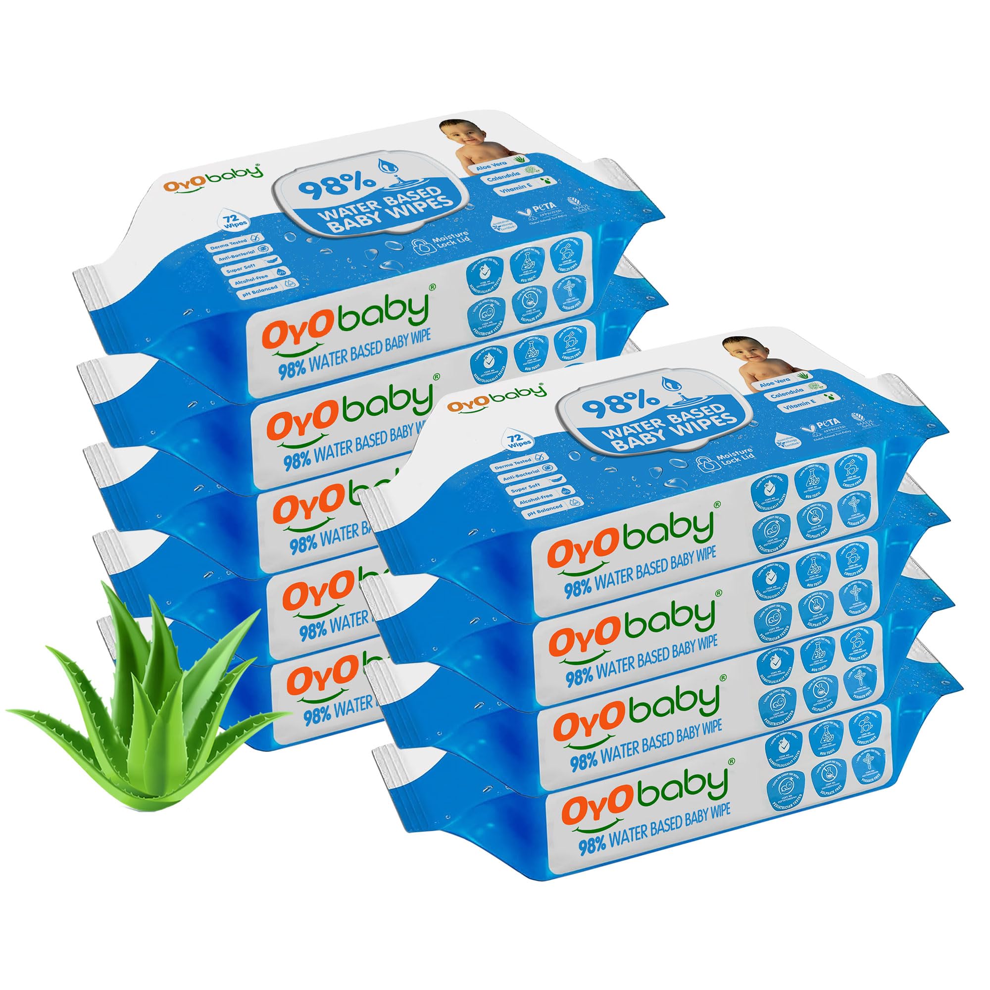 OYO BABY® Baby Wipes Offers Combo Wet Wipes With Lid / Water Wipes for Newborn babies Pack of 9 (648 wipes)
