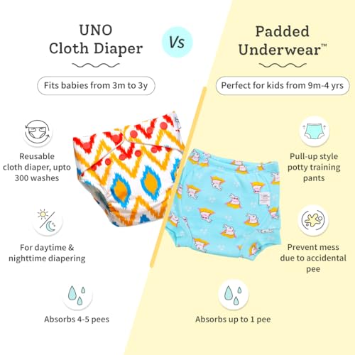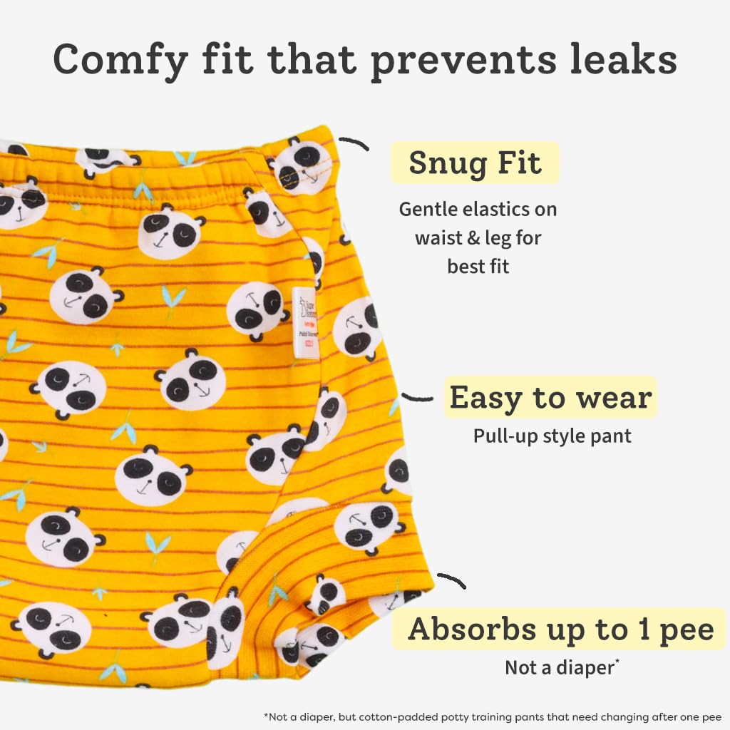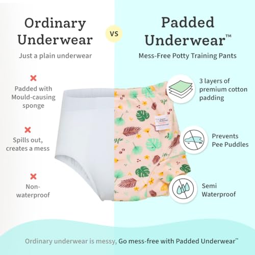 COTTON PADDING: SuperBottoms Padded Underwear has 3 Layers of 100% cotton padding which helps in preventing leaks and messy pee accidents. It is Semi waterproof and has a SuperDryFeel Layer on top to avoid a pool around the baby.