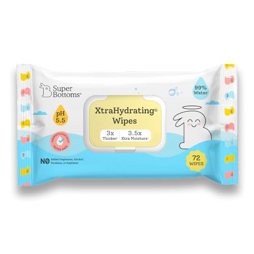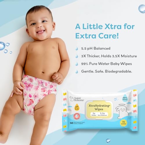 SuperBottoms XtraHydrating¢ Wipes - 3x XtraThick¢ with 3.5x Moisture vs Ordinary wipes | Doctor Tested Best Wipes (Mild Natural Fragrance)| Premium wipes |72 Pcs - Pack of 1 72 pcs |Best baby wipes