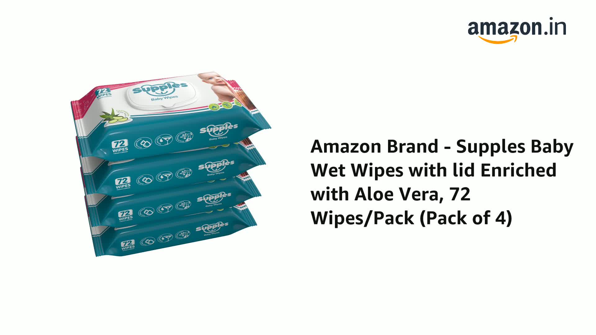 HomeBabyDiaperingBaby WipesAmazon Brand - Supples Baby Wet Wipes with Lid | 288 Wipes | 72 Wipes x 4 Packs | Enriched With Aloe Vera and Vitamin E | Alcohol-Free and Paraben-Free | Pure Water-Based formulation