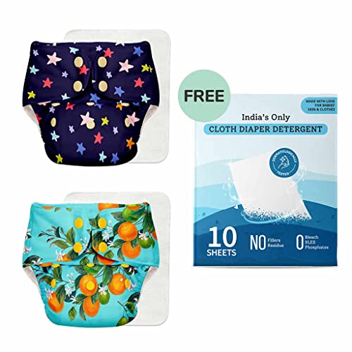 SuperBottoms UNO Freesize Cloth Diaper + India's ONLY Cloth Diaper Detergent| Reusable Cloth diaper for babies 3M to 3Y | Residue FREE Detergent in Sheet form|1 Diaper and 1 Organic cotton Soaker