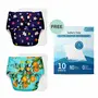 BASIC Pack of 2 Assorted Freesize AdjustableWashable and Reusable Cloth Diaper for babies 0-3 Years|One Size Adjustable Diapers(Pack of 2 diapers+2 inserts+Free 10 Sheet Cloth Diaper Detergent Sheet)