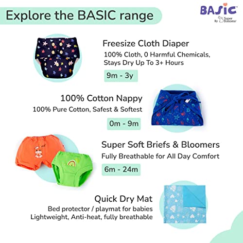 BASIC Quick Dry Pads | Insert | Diaper liner for Adjustable Cloth Diaper |Reusable Cloth Diapers (Compatible with BASIC diapers) | Pad for Freesize Cloth Diaper-Pack of 3 + 1 Assorted Wateproof Bib