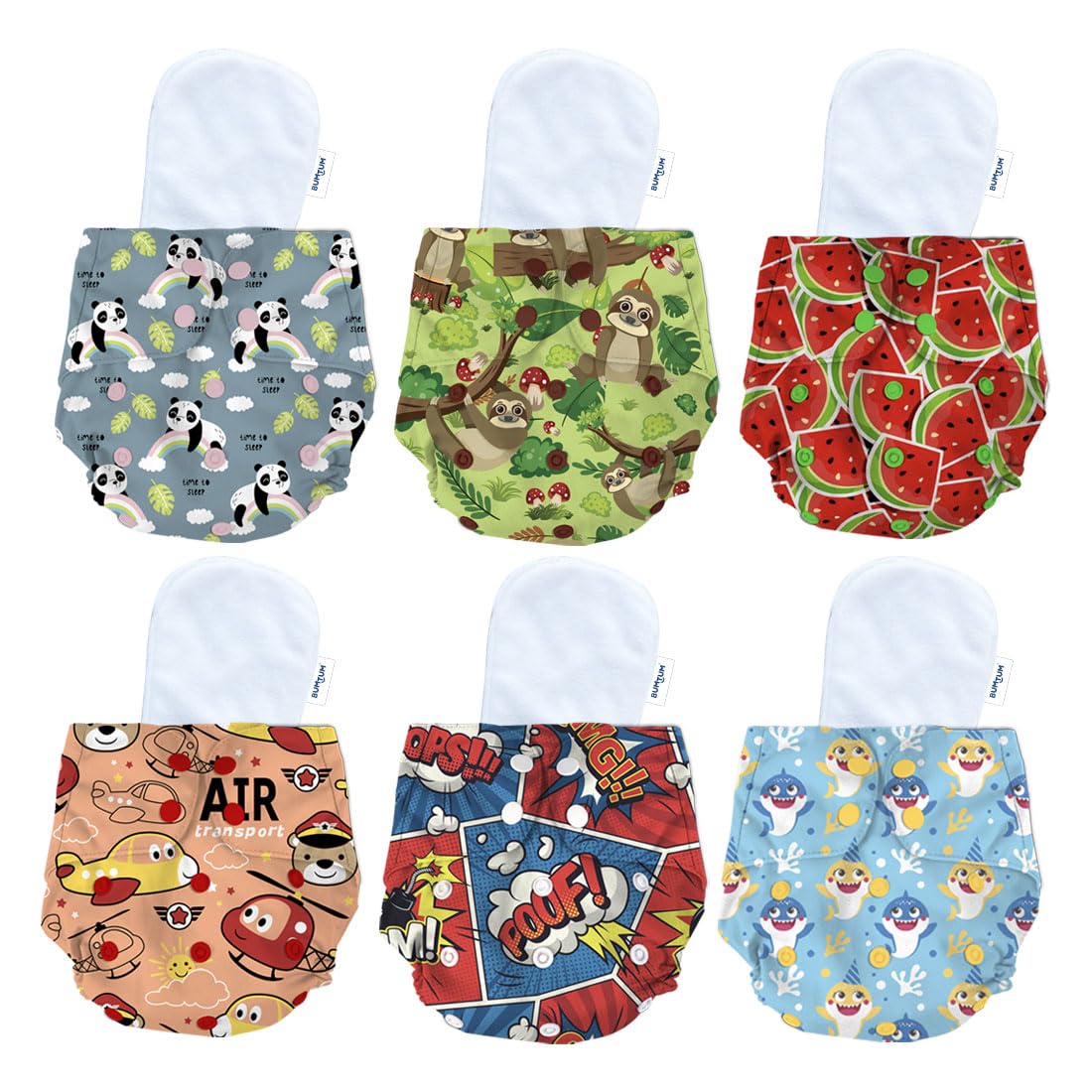 Bumtum Baby Diaper | 0-3 Yrs Baby Freesize | Pack of 6, New Born Baby Diaper, Cloth Diaper, Waterproof Reusable Diaper, Washable, Cotton (Teddy, Unicorn, Teddy Face, Space Old, Dinosaur & Wonderland)