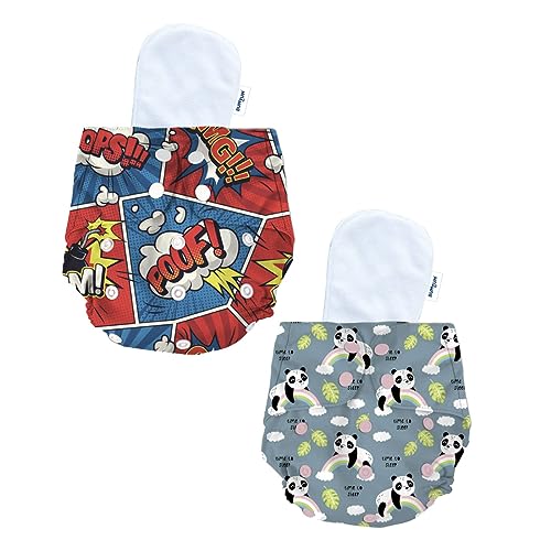 Bumtum Baby Diaper | 0-3 Yrs Baby Freesize | Pack of 2, New Born Baby Diaper, Cloth Diaper, Waterproof Reusable Diaper, 5hrs Absorbency, Washable, Cotton Soaker, Extra Soft (Panda & Poof)