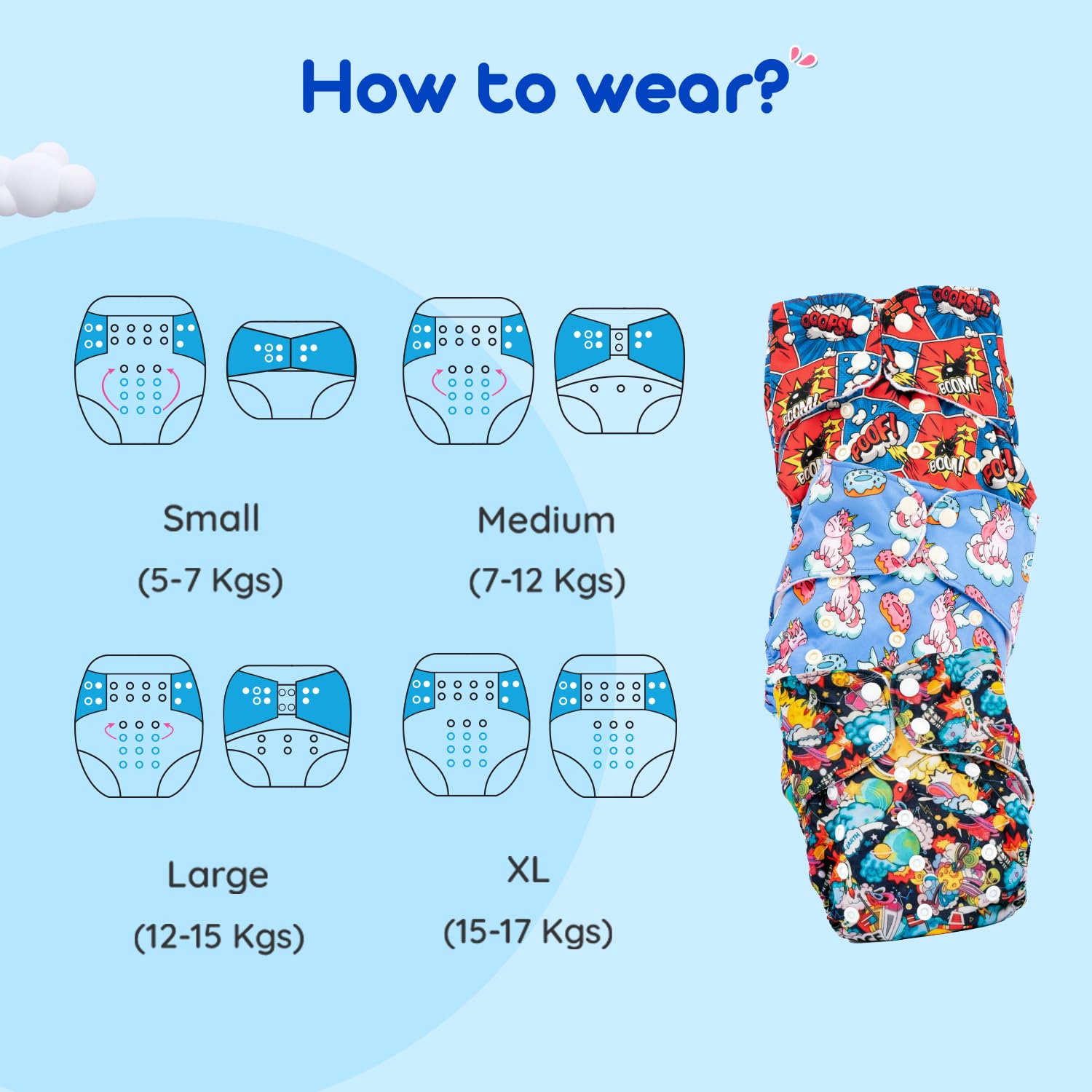 LOVELY PRINTS & COLORS: Unlike disposable diapers these diapers are available in pink and blue colours & baby elephant prints. You just cannot resist those cute baby prints. Pairing these with a tank top or t-shirt in summer will make your kiddo look oh-s