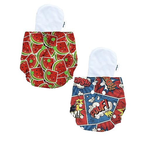 Bumtum Baby Diaper | 0-3 Yrs Baby Freesize | Pack of 2, New Born Baby Diaper, Cloth Diaper, Waterproof Reusable Diaper, 5hrs Absorbency, Washable, Cotton Soaker, Extra Soft (Poof & Watermelon)