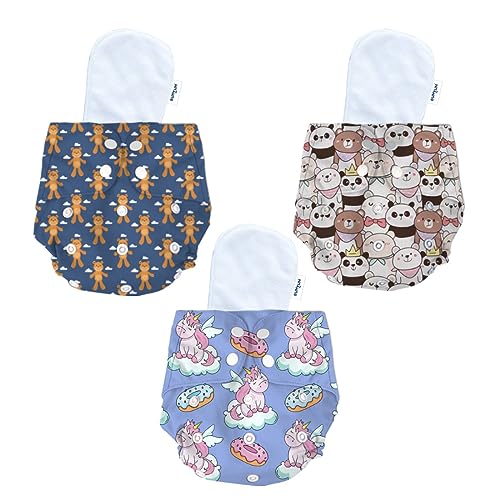 BUMTUM Cloth Diapers for Babies 0 to 3 Years | Pack of 3 with Inserts | Reusable Diaper for New Born Baby Cloth Diapers 5hrs Absorbency Freesize Washable Cotton (Teddy Unicorn & Teddy Face)