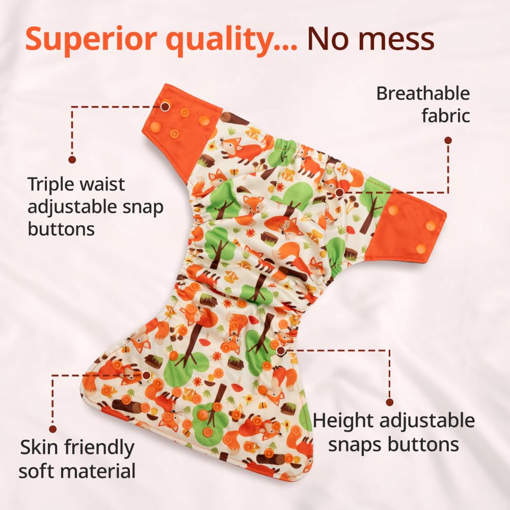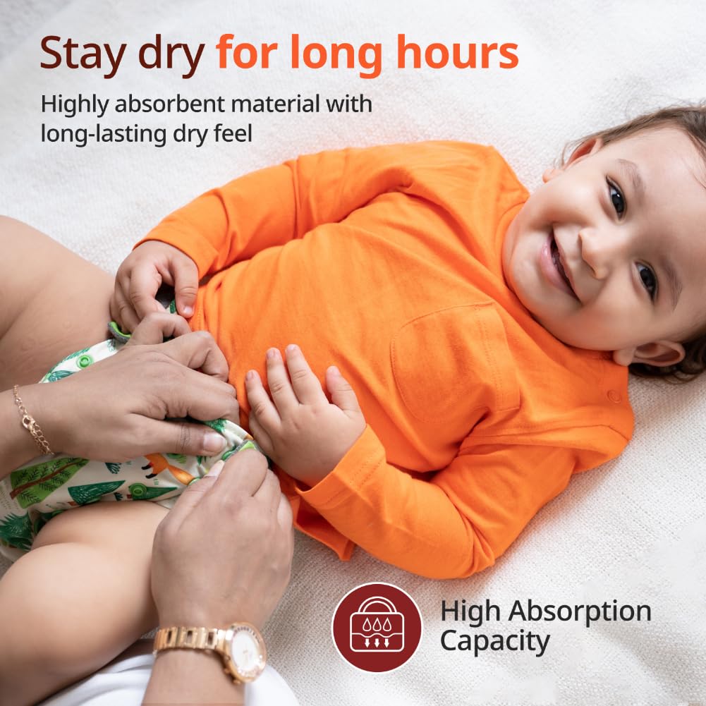 Greetings mothers! Introducing the LuvLap Reusable Cloth Diapers which are designed to provide your child the maximum comfort possible. They are made of bamboo charcoal fabric that is exceptionally soft and absorbent. You can say good-bye to leaks and keep your baby dry and comfy all day and night with our leak-proof technology. These cloth diapers are perfect for babies between the ages of 0 and 3 since they offer worry-free days and cozy nights which is advantageous for both mama and baby! In addition to being convenient these reusable machine-washable cloth diapers are also environmentally friendly. Choose LuvLap for your baby's comfort and your peace of mind. From hassle-free diaper changes greetings and goodbye to disposables that squander!