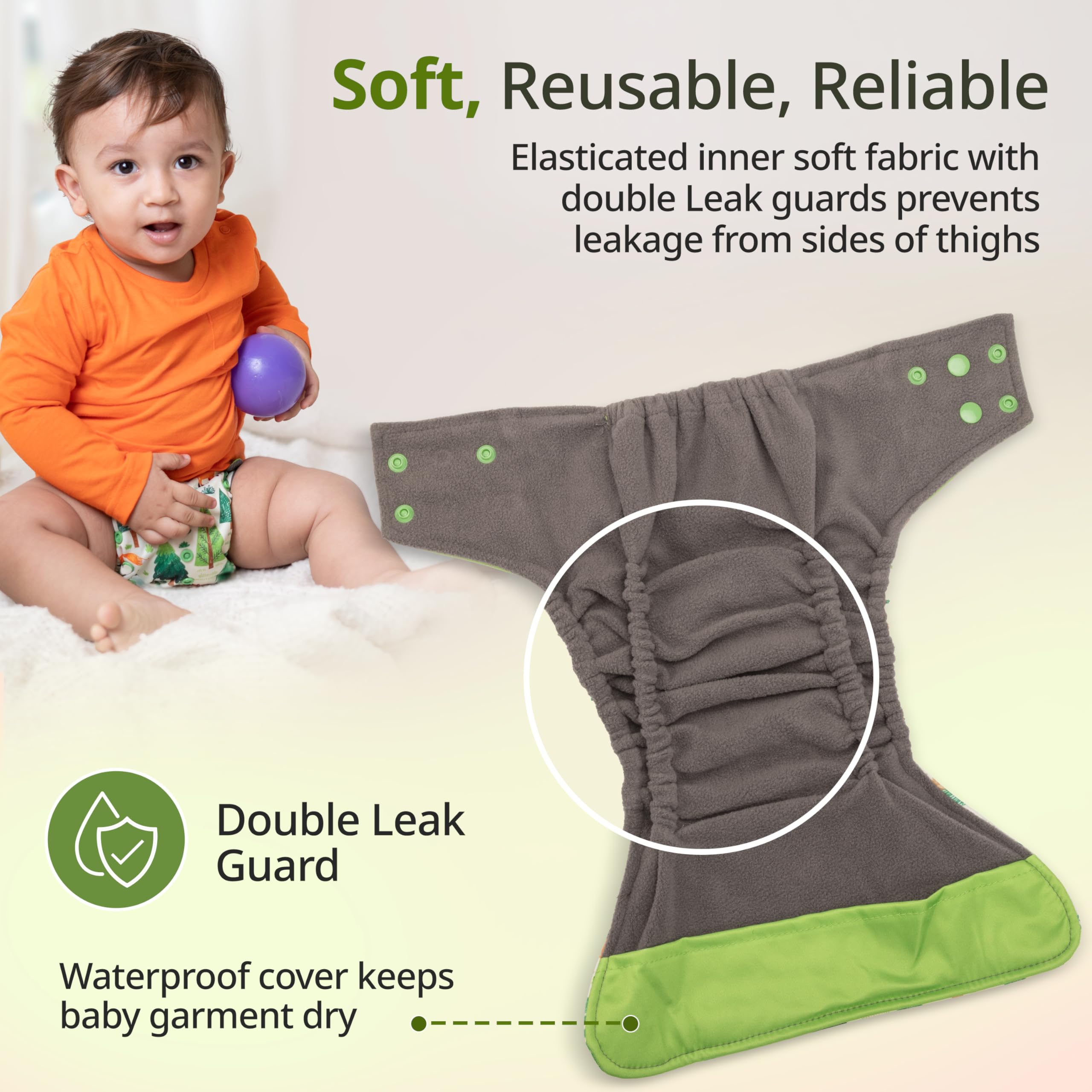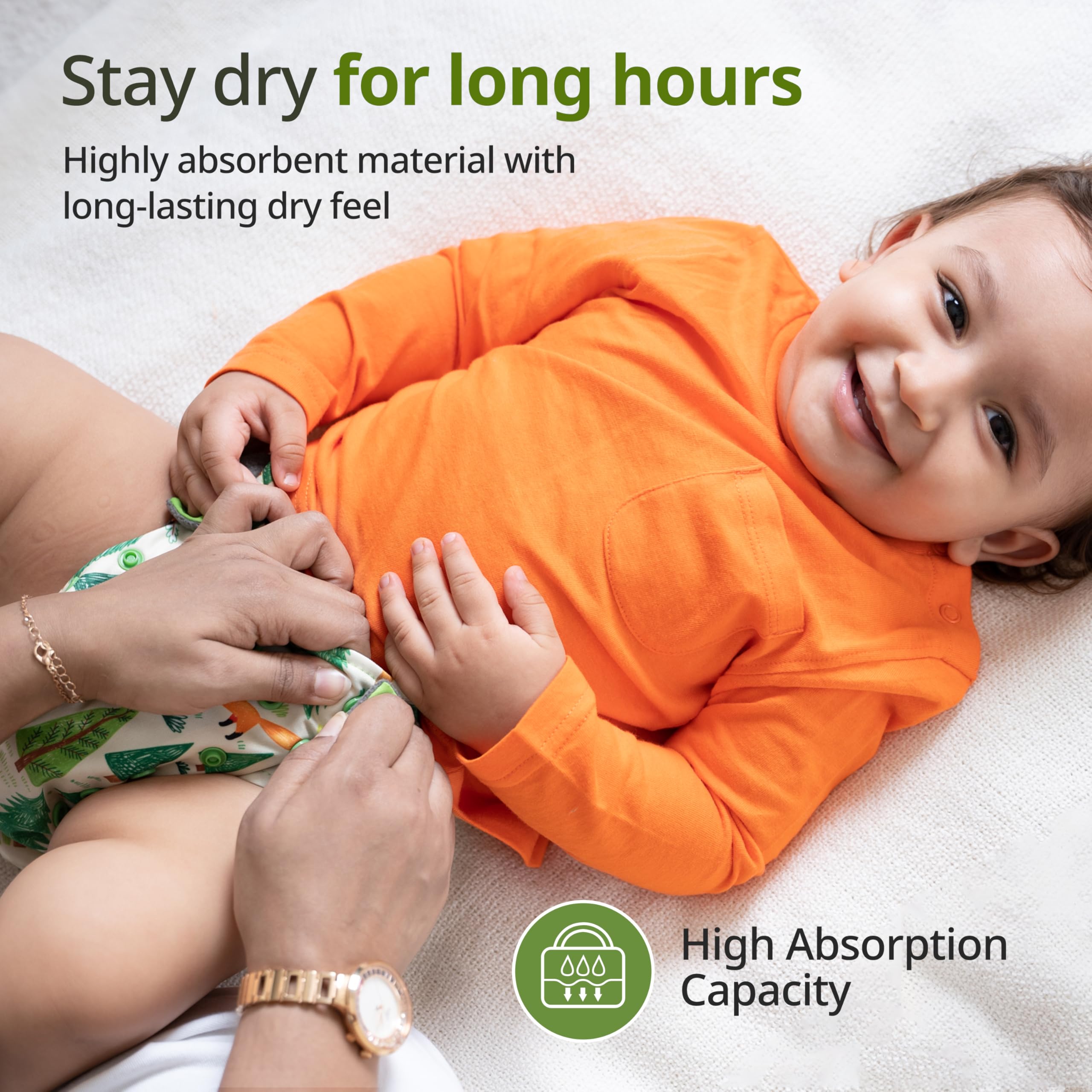 Greetings mothers! Introducing the LuvLap Reusable Cloth Diapers which are designed to provide your child the maximum comfort possible. They are made of bamboo charcoal fabric that is exceptionally soft and absorbent. You can say good-bye to leaks and keep your baby dry and comfy all day and night with our leak-proof technology. These cloth diapers are perfect for babies between the ages of 0 and 3 since they offer worry-free days and cozy nights which is advantageous for both mama and baby! In addition to being convenient these reusable machine-washable cloth diapers are also environmentally friendly. Choose LuvLap for your baby's comfort and your peace of mind. From hassle-free diaper changes greetings and goodbye to disposables that squander!