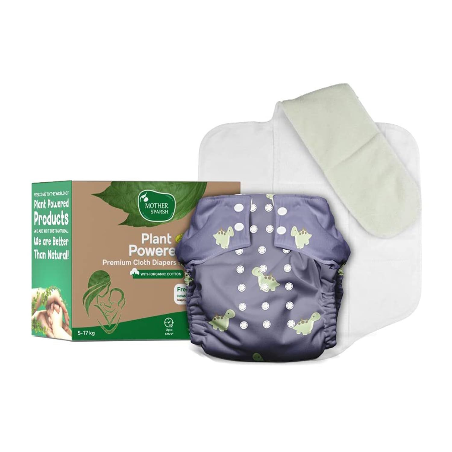 Mother Sparsh Plant Powered Cloth Diaper for Babies-Free Size | Medical Grade Fabric with 100% Organic Cotton | Reusable 13 Layer Breathable Soaker with Built-in Booster Pad | (Diposauras)