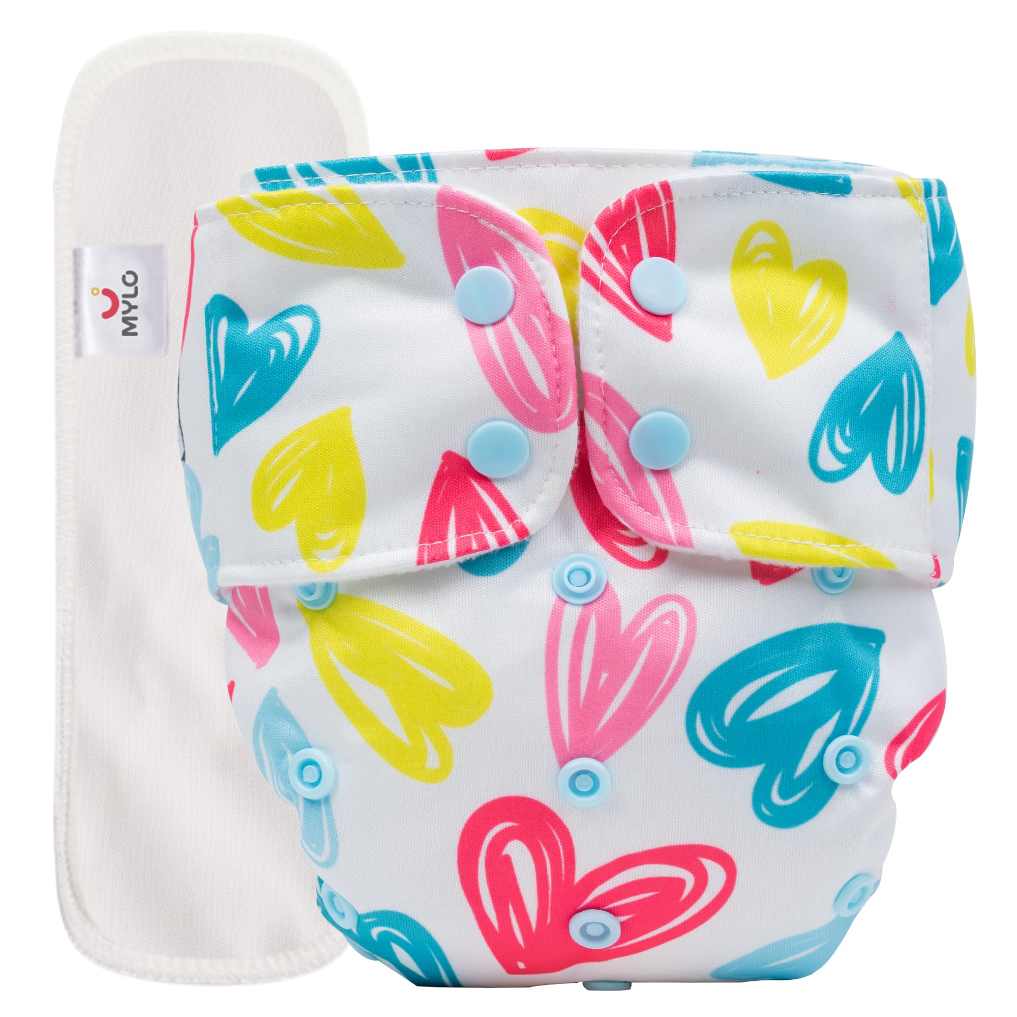 Mylo Leak-Proof Baby Cloth Diaper Combo (1 Diapers + 1 Inserts) | Free Size (3M-3Y) | High Absorption | Quick Dry | Oeko-Tex Certified | Washable - Heart Doodle
