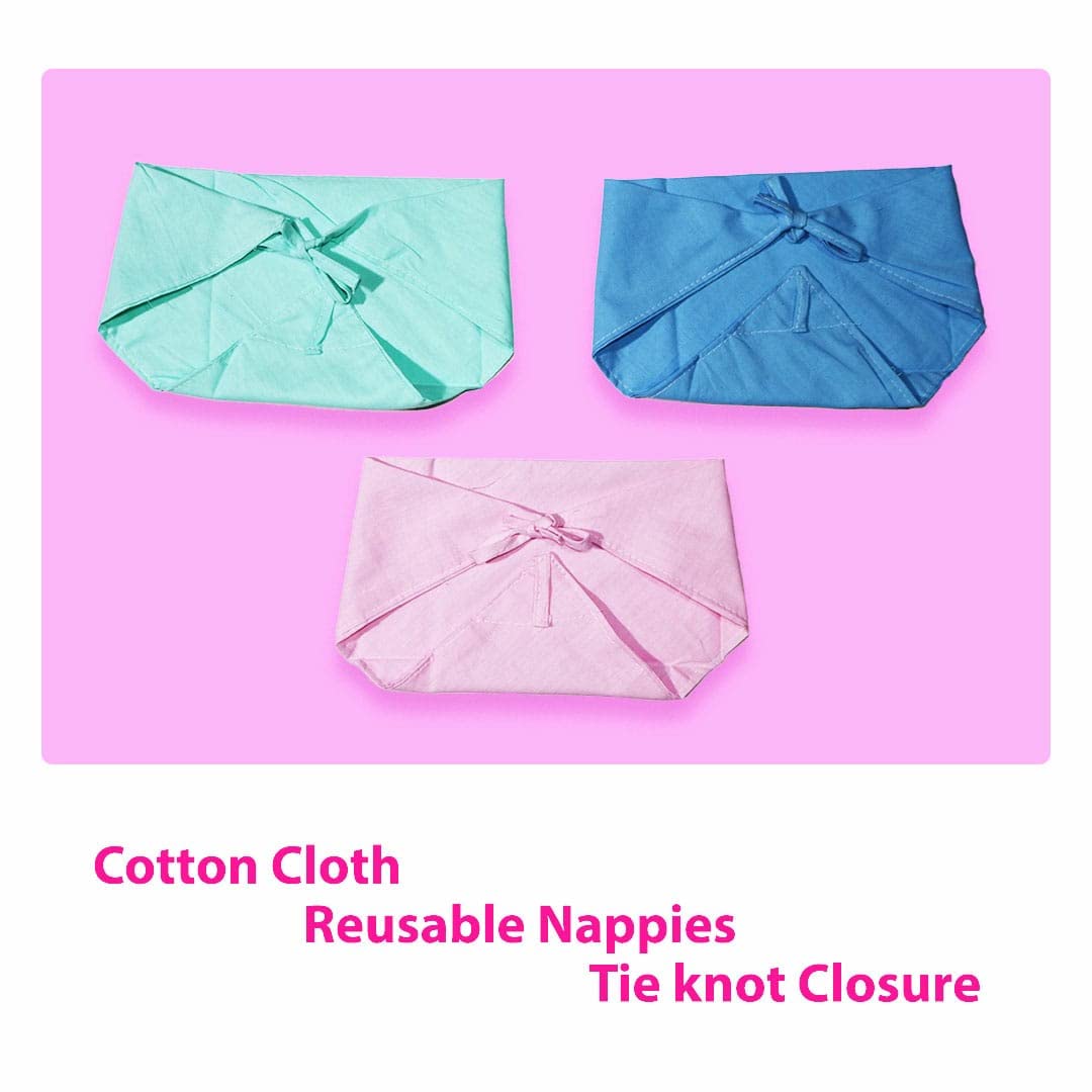 HomeBabyDiaperingCloth DiapersNappy for New Born Baby - Set of 12 Pcs/Cotton Cloth Langot for Babies 0-6 Months Double Layer Nappies V Shaped Washable and Reusable Pack of 12