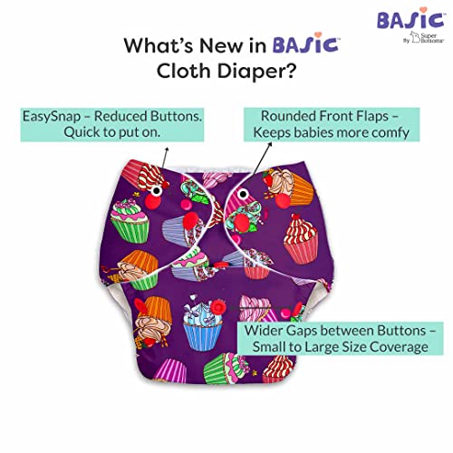 Superbottoms 2 Basic Reusable Cloth Diaper With New Quick Dry Ultrathin Pads-Pack Of 4|FreesizeWashable Diapers For Baby 0-3 Yrs|Stay Dry&Lasts Up To 3Hrs -Assorted