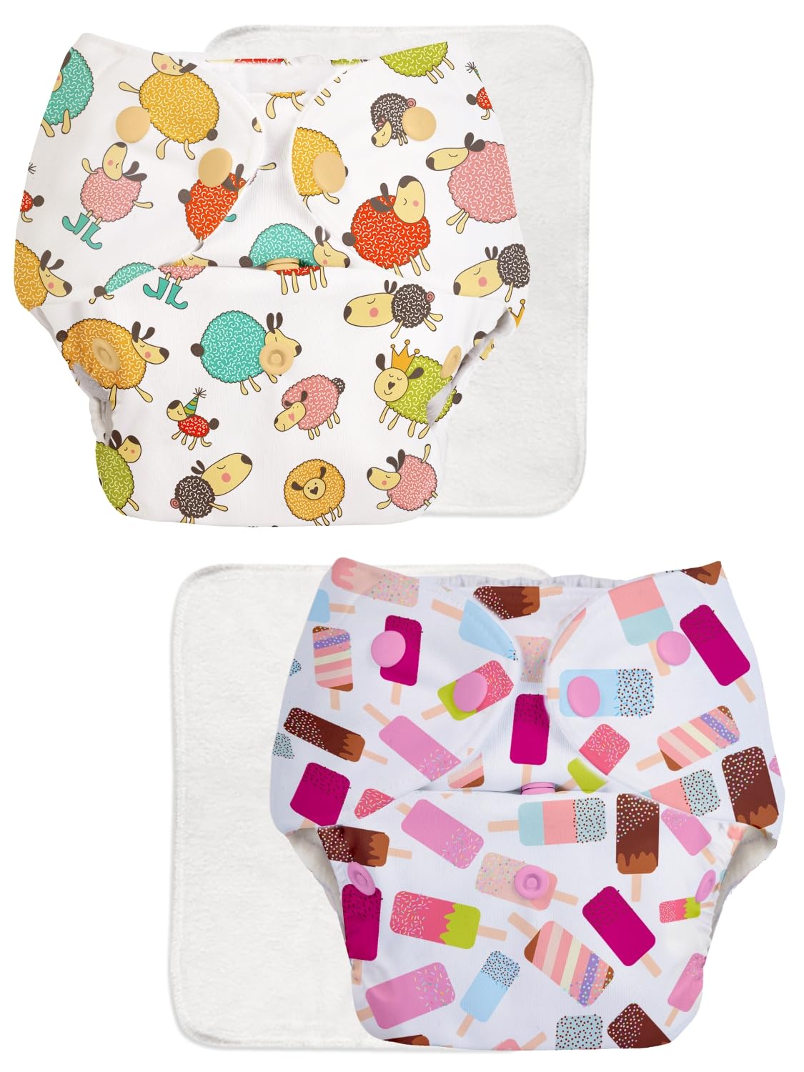 SuperBottoms BASIC - Assorted Pack of 2 Cloth Diaper For Baby | Washable & Reusable Cotton Cloth Diaper | 0-3 Years | Freesize | Adjustable | Reduces Rash | With Quick Dry Pad/Insert
