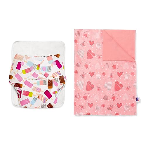 SuperBottoms Basic Bluestar Print diaper with soaker | BASIC Bed Protecting Mat Peppy Pink print Small size - Bed & Floor Protector/Playmat Super Light-Weight 8.5X Absorbent