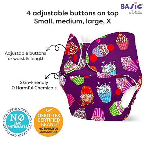 SuperBottoms BASIC Cloth Diaper For Baby | Washable & Reusable Cotton Cloth Diaper | 0-3 Years | Freesize | Adjustable | Reduces Rash | With 2 Quick Dry Pad/Insert | Cupcake |