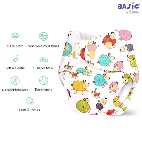 SuperBottoms BASIC™ Cloth Diaper Without Soaker for 3m-3y babies (Sheeps) | Washable & Reusable Diapers | Quick Absorption, Lasts 3+ hrs | Leakproof Day Diaper | 0 chemicals