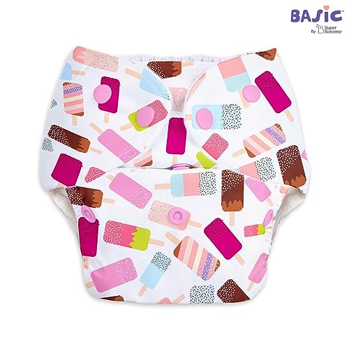 HomeBabyDiaperingCloth DiapersSuperBottoms Basic Icecream Print diaper with soaker | BASIC Bed Protecting Mat Peppy Pink print Medium size - Bed & Floor Protector/Playmat, Super Light-Weight, 8.5X Absorbent
