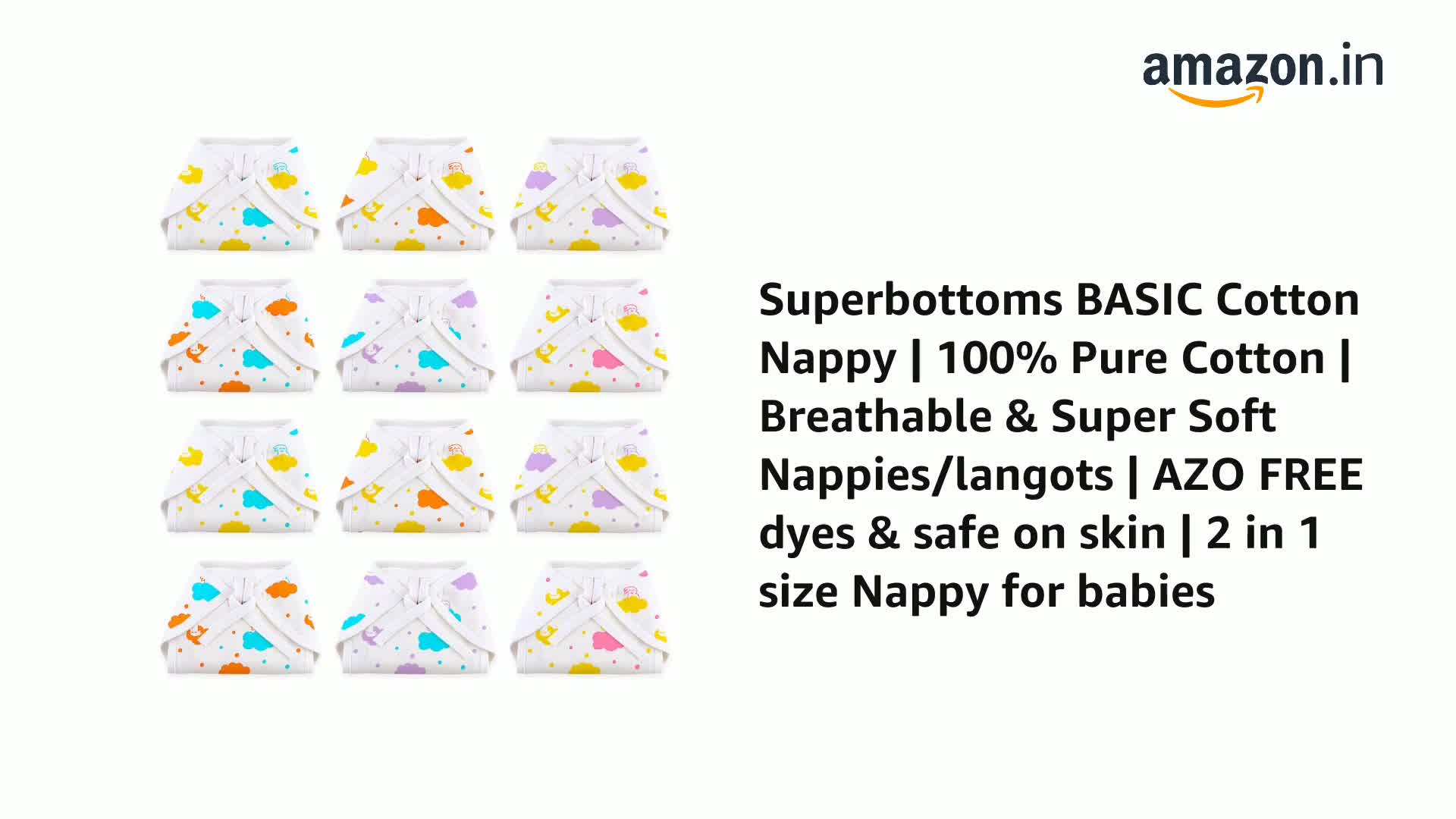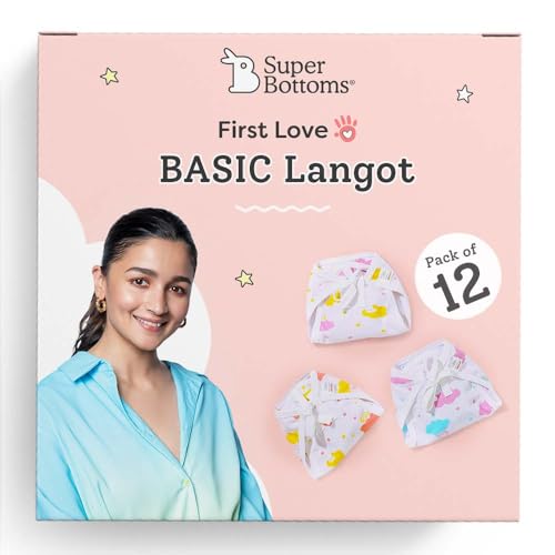 HomeBabyDiaperingCloth DiapersSuperBottoms BASIC Double Layered 100% Pure Cotton Langot for New Born 0-6 Months – Baby Gift Set for New Born – 100%– Pack of 12 – Fits Up To 5 kg