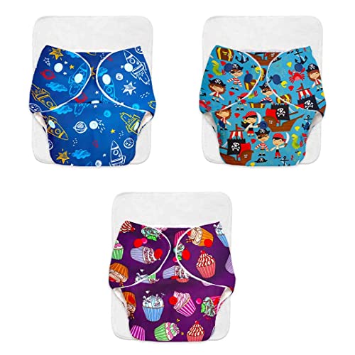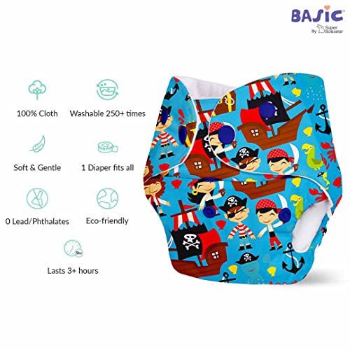 SuperBottoms BASIC Pack of 3 Assorted Cloth Diaper For Baby | Washable & Reusable Cotton Cloth Diaper | 0-3 Years | Freesize | Adjustable | Reduces Rash | With Quick Dry Pad/Insert