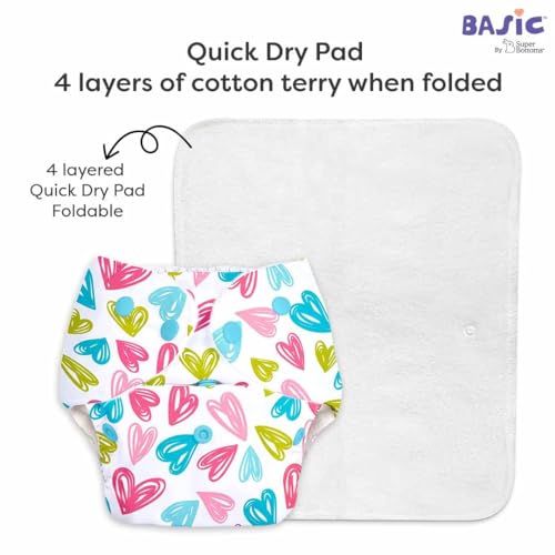 HomeBabyDiaperingCloth DiapersSuperBottoms BASIC Pack of 5 Freesize Adjustable, Washable and Reusable Cloth Diaper for babies 0-3 Years | One Size Adjustable Diapers (Pack of 5 diapers+ 5 inserts) Assorted prints